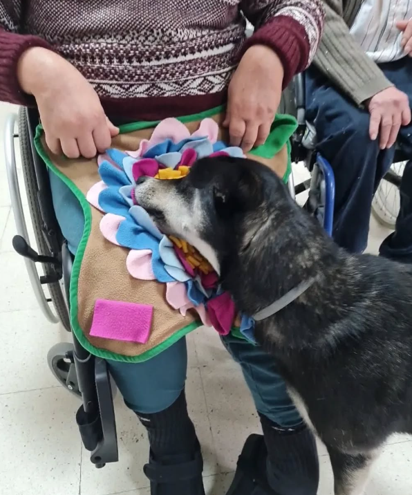 Yuna, como perra de intervención, ha ayudado ya a decenas de personas en sesiones de intervención social. Con su salero y su amor por la gente, sana heridas y fomenta el bienestar de diferentes colectivos.